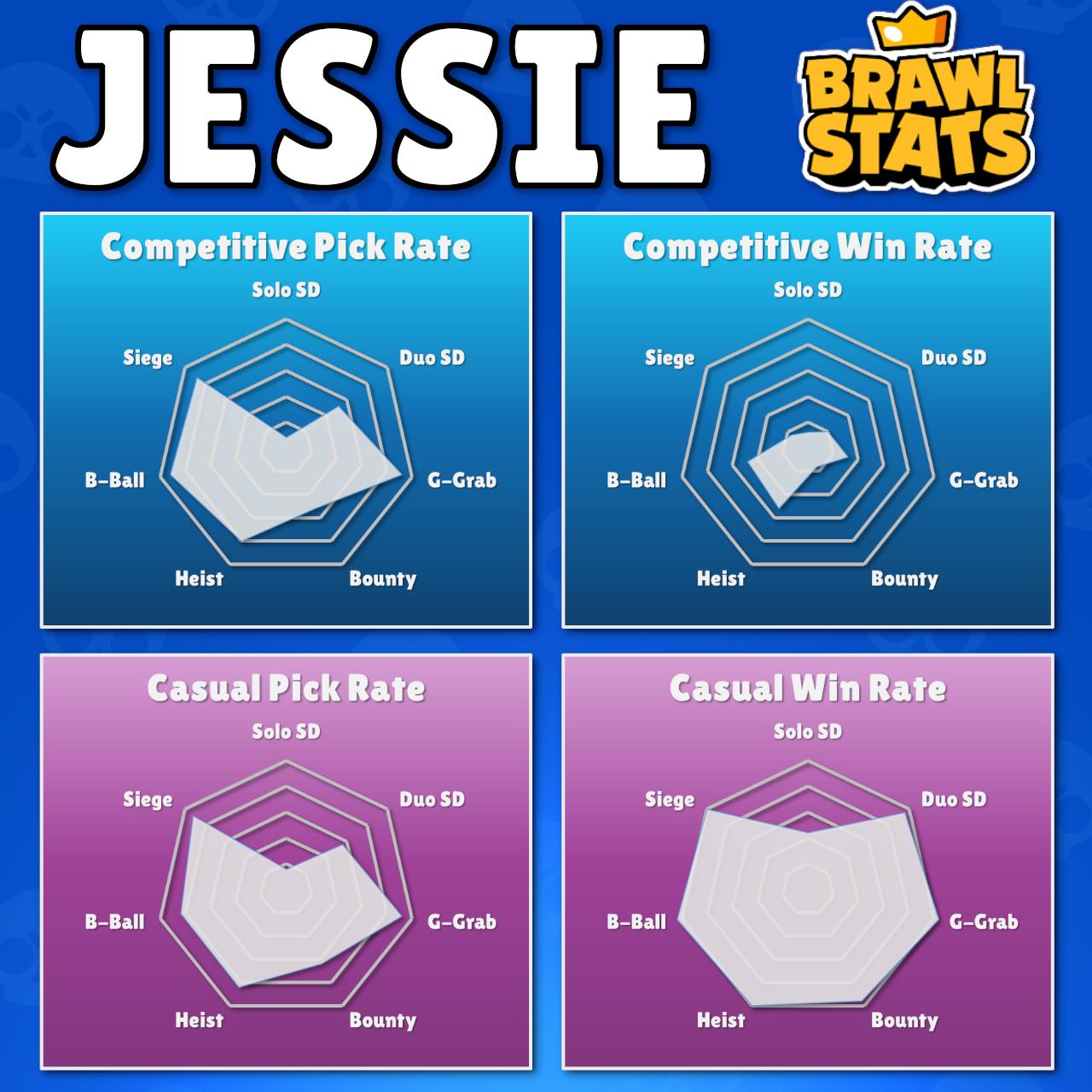 Kairostime Gaming On Twitter Some Interesting Stats On Jessie Thanks To Brawlstats More On Future Videos 2nd Highest Win Rate For Casual 0 599 Trophies 2nd Lowest Win Rate For Competitive 600 Trophies